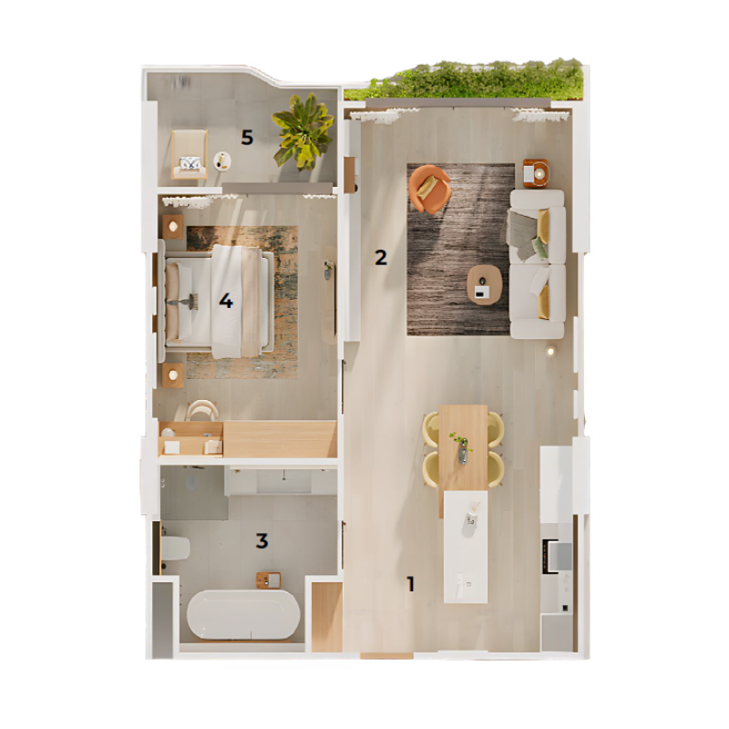 Fully furnished and well equipped units. Furniture from premium manufacturers. Cabinet furniture is covered with moisture and wear-resistant material.