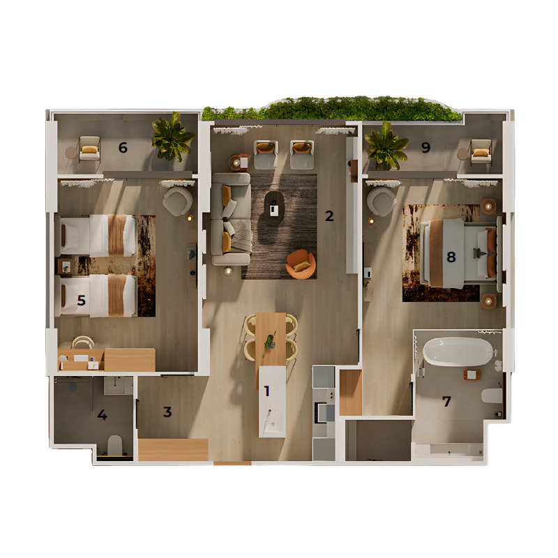 All owners of the apartments automatically become a members of the Layan Green Park loyalty program. Benefits include discounts for all room categories at Layan Green Park, SPA services, Food and Beverage in all outlets and room service and transfer.